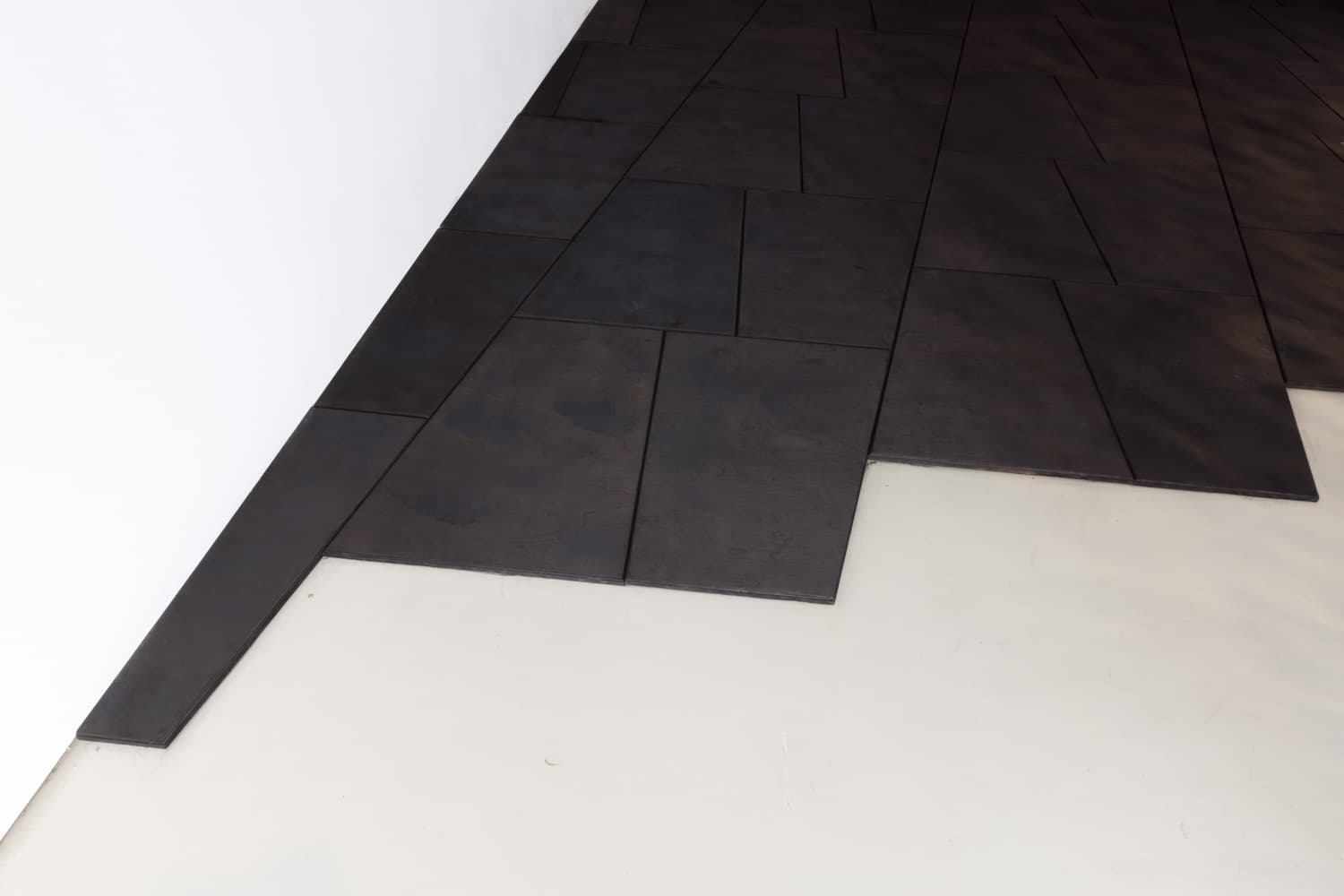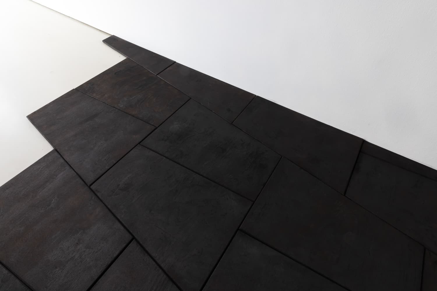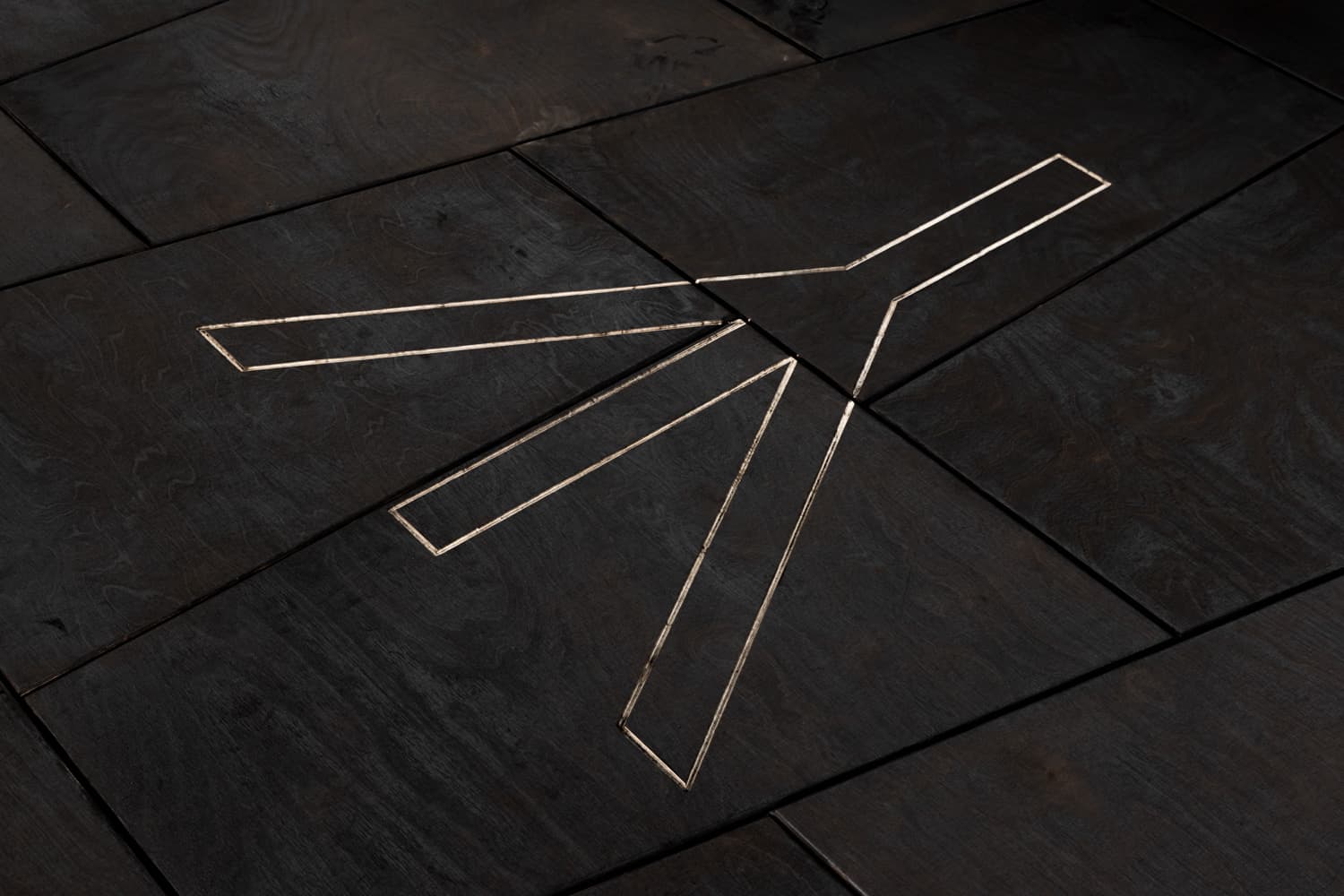 This project involved the creation of a wood floor installation designed for the "Gods Moving in Places" exhibition at IFA-Galerie Berlin, curated by artist Mathieu Kleyebe Abonnenc. The installation comprises approximately 300 meticulously crafted birch plywood tiles, each individually charred to achieve a uniform dark color and distinctive texture.
